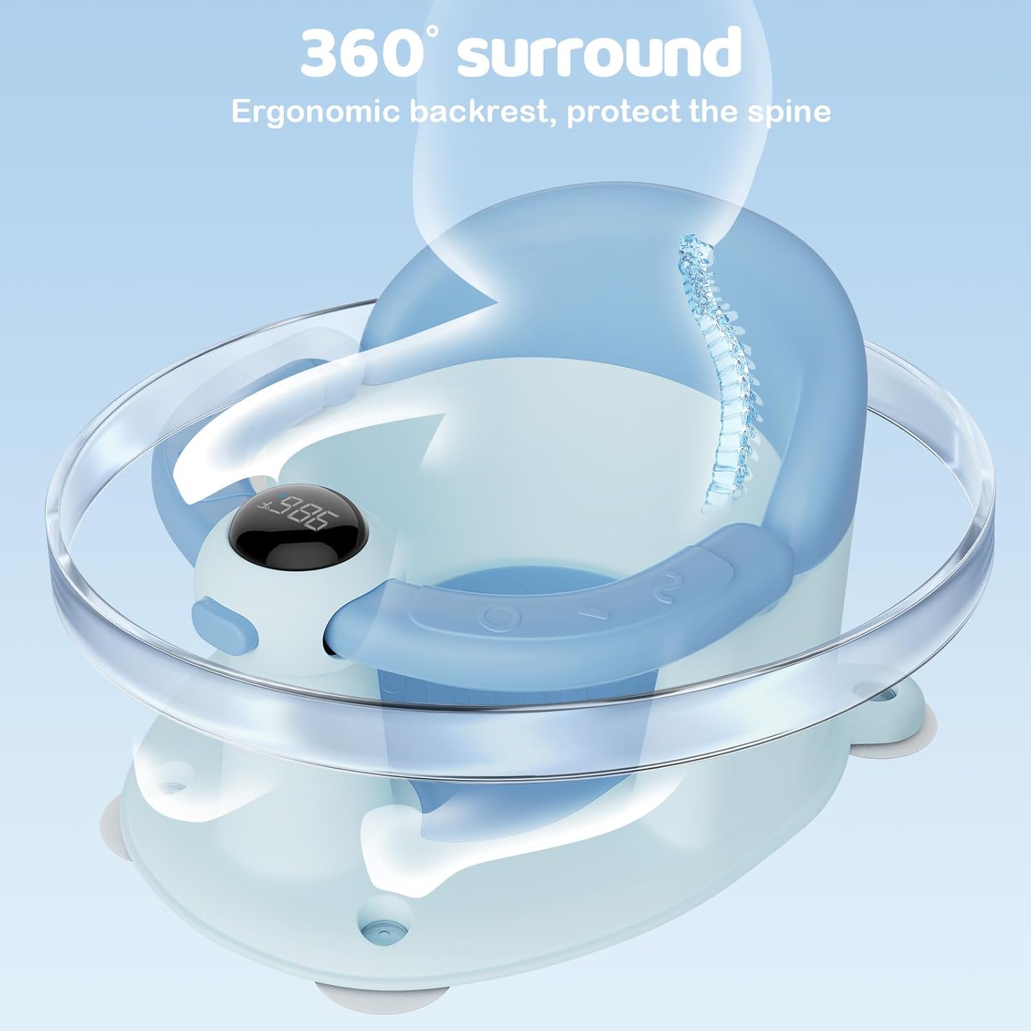Baby Bath Seat-for Babies 6 Months & up, Water Temperature Display+Soft Cushion, Non-Slip Toddler Bath Seat for Baby, Sit Up Bath Seat for Baby, Blue