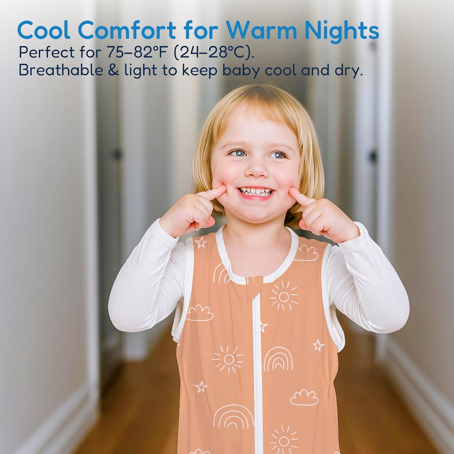 - ๐๐ฅ๐ญ๐ซ๐-๐๐จ๐๐ญ & ๐๐ซ๐๐๐ญ๐ก๐๐๐ฅ๐: Crafted from ultra-soft, breathable fabric, this 0.5 TOG toddler sleep sack with feet ensures your baby stays cool and comfortable during warmer nights. Perfect for summer sleep sack 2T and 3T toddlers, especially during mild weather.