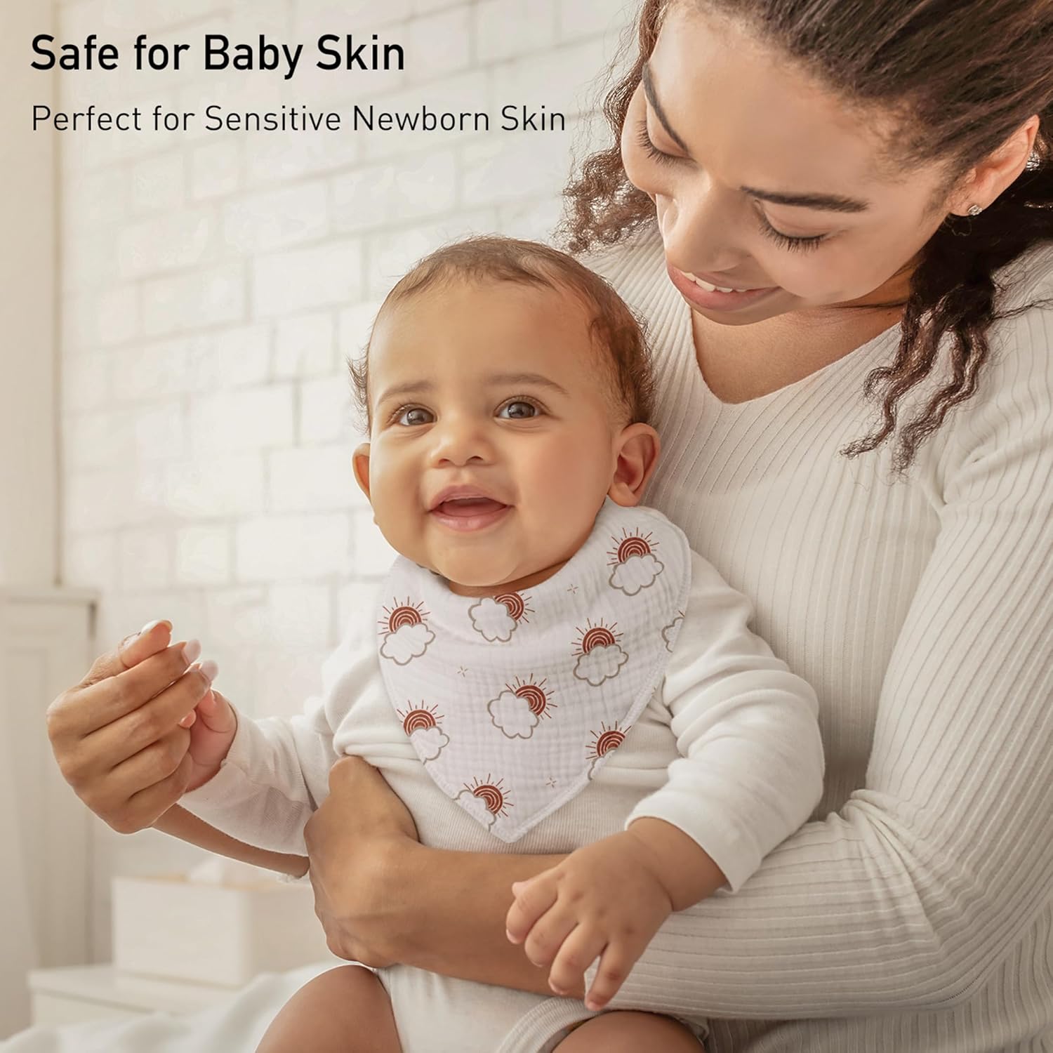 • Ideal Baby Gift:Each Soft Muslin Baby Bandana Drool Bib set is well made and neatly packaged. Baby muslin bibs are essential gifts, which will make a practical and thoughtful present at baby showers, on baby registries, for Christmas, housewarmings, or any special gifting occasion for new moms and dads.