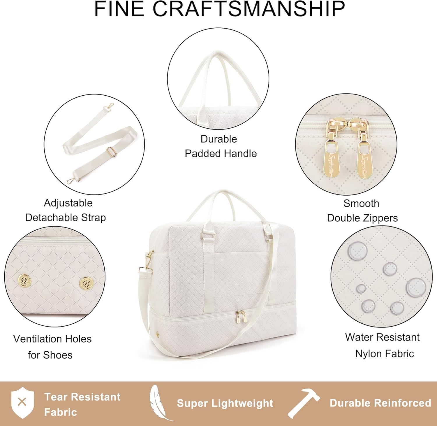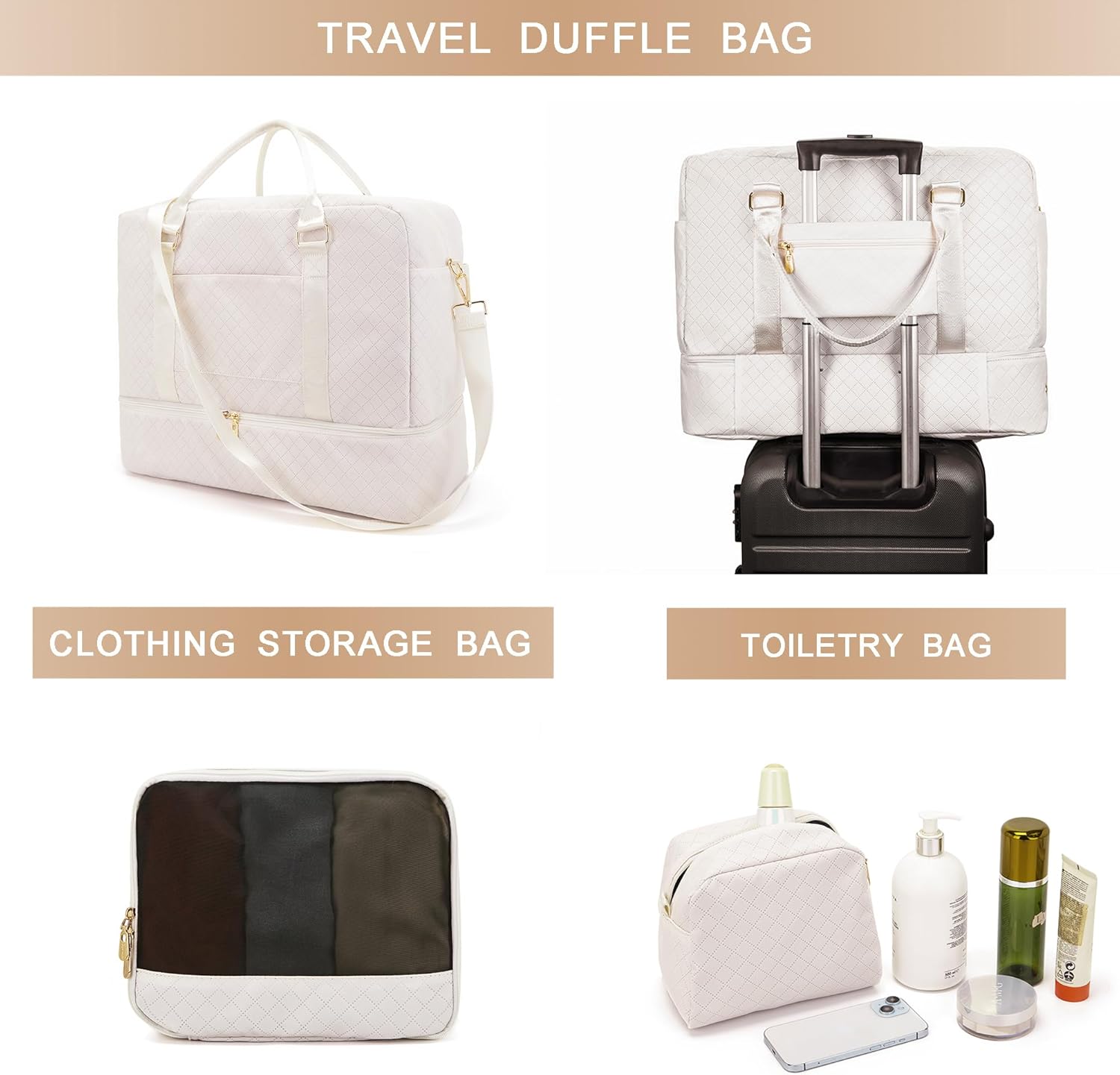 • This large duffle bag can even fit in 3-5 days of daily essentials. Multiple pockets to keep your personal items organized: a spacious main compartment with 5 big pockets for personal items and in the front of the duffle bag for travel, there is a pocket for easy access electronics or travel materials. Featuring with classy and gorgeous appearance. Our quilted duffle bag reach morden urban ladies greatest demand and fantasy on travel bag.