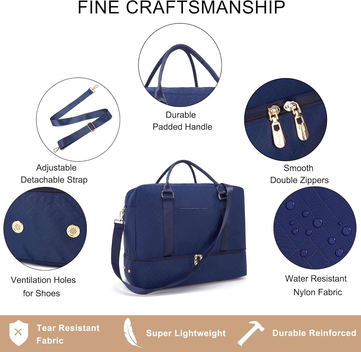 Soperwillton Women Travel Duffel Bags Carry On Overnight Bag with Shoe Compartment & Toiletry Pouch Gym Bag with Wet Pocket