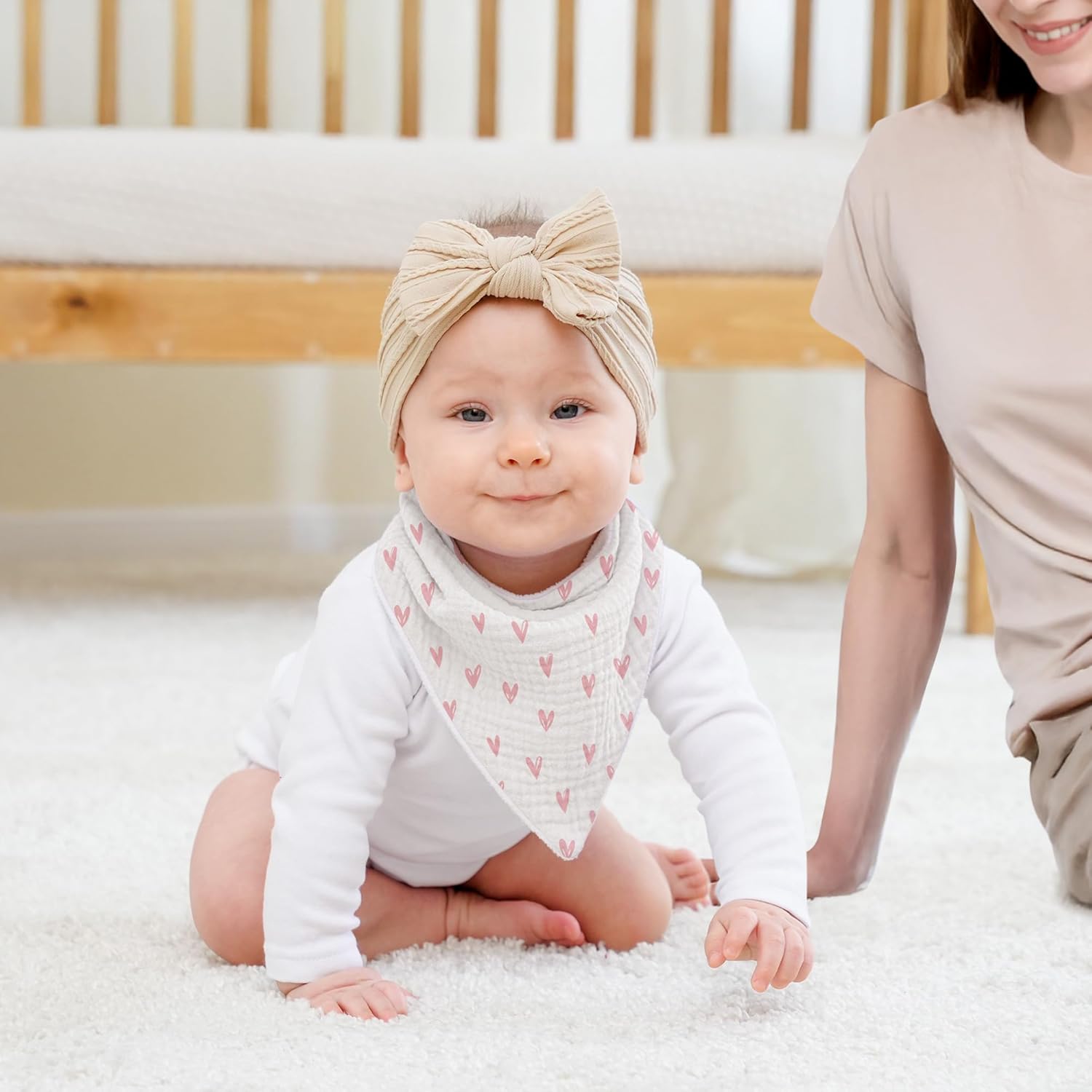 Susurration Muslin Baby Bibs 10Pack Bandana Drool Bibs Soft Adjustable Newborn for Unisex Girls & Boys (Pink Stars)