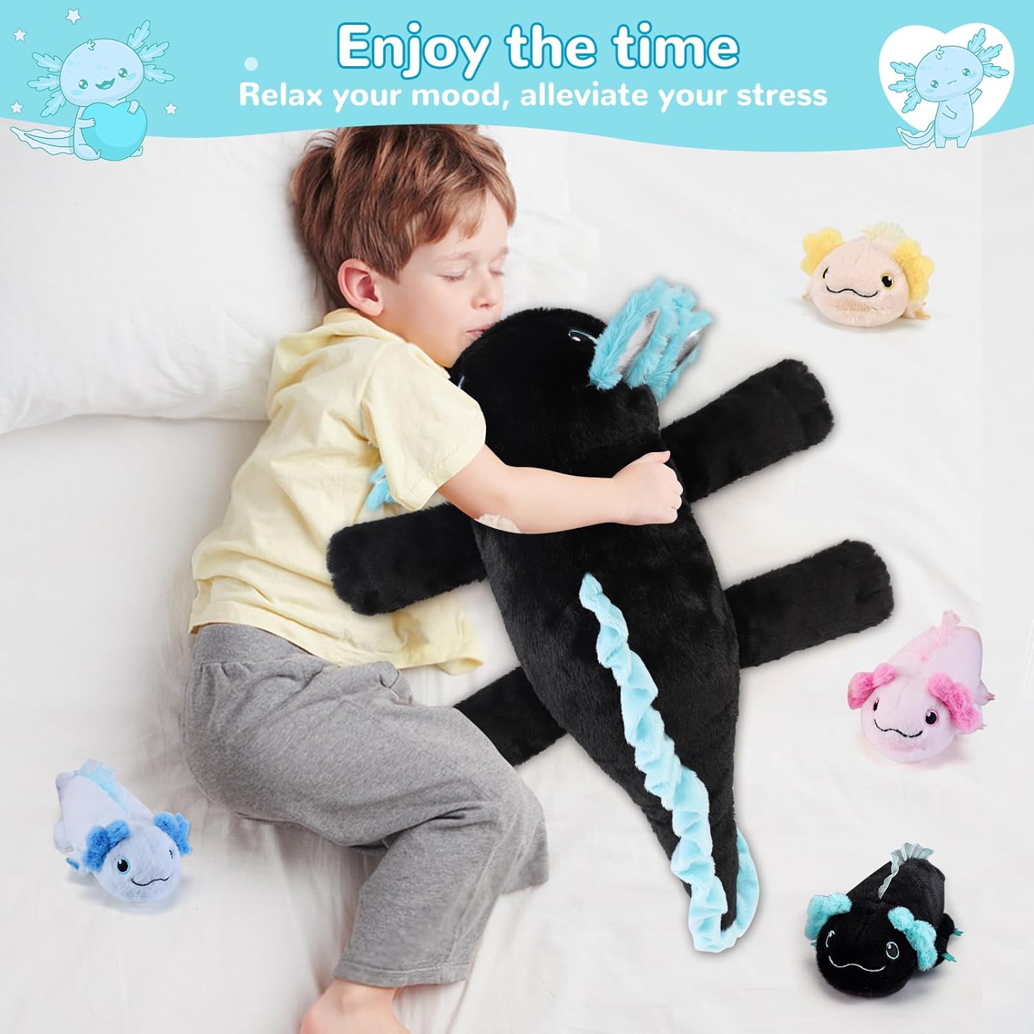 5 Pieces Axolotl Stuffed Animals with Babies Inside Belly - 1 Mommy Stuffed Axolotl with 4 Babies - Black Axolotls Plush Toy for Kid Age 3-8, Gift Ideal for Christmas, Valentine's, Birthday