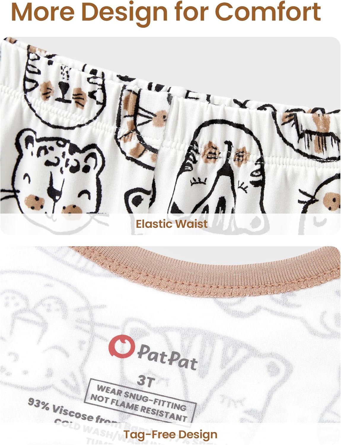 PATPAT Bamboo Viscose Pajama Set for Toddlers with Improved Tensile Strength, Snug Fit Pjs Sleeper for Baby Boys Girls Kids