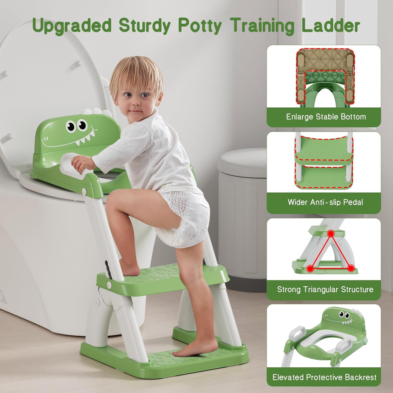 - ✅[ADJUSTABLE HEIGHT AND FOLABLE ]: Our toddler toilet seat with steps has 6 adjustable heights which ensures that it fits 99.99% shape and highs of all toilets (like V/U/O shape. NOT for square), the foldable design allows it maximize the space-saving when not in use and keep everything in order.