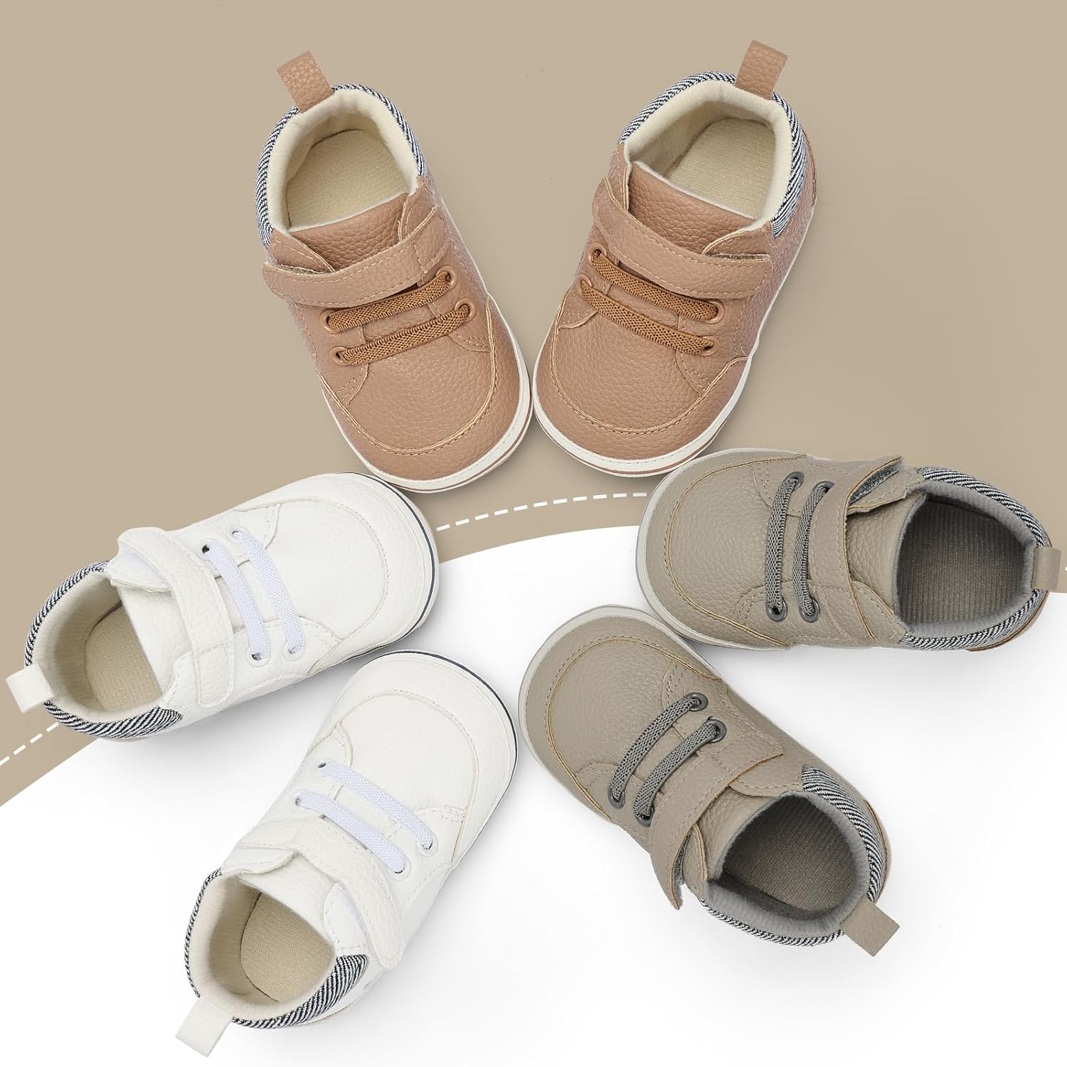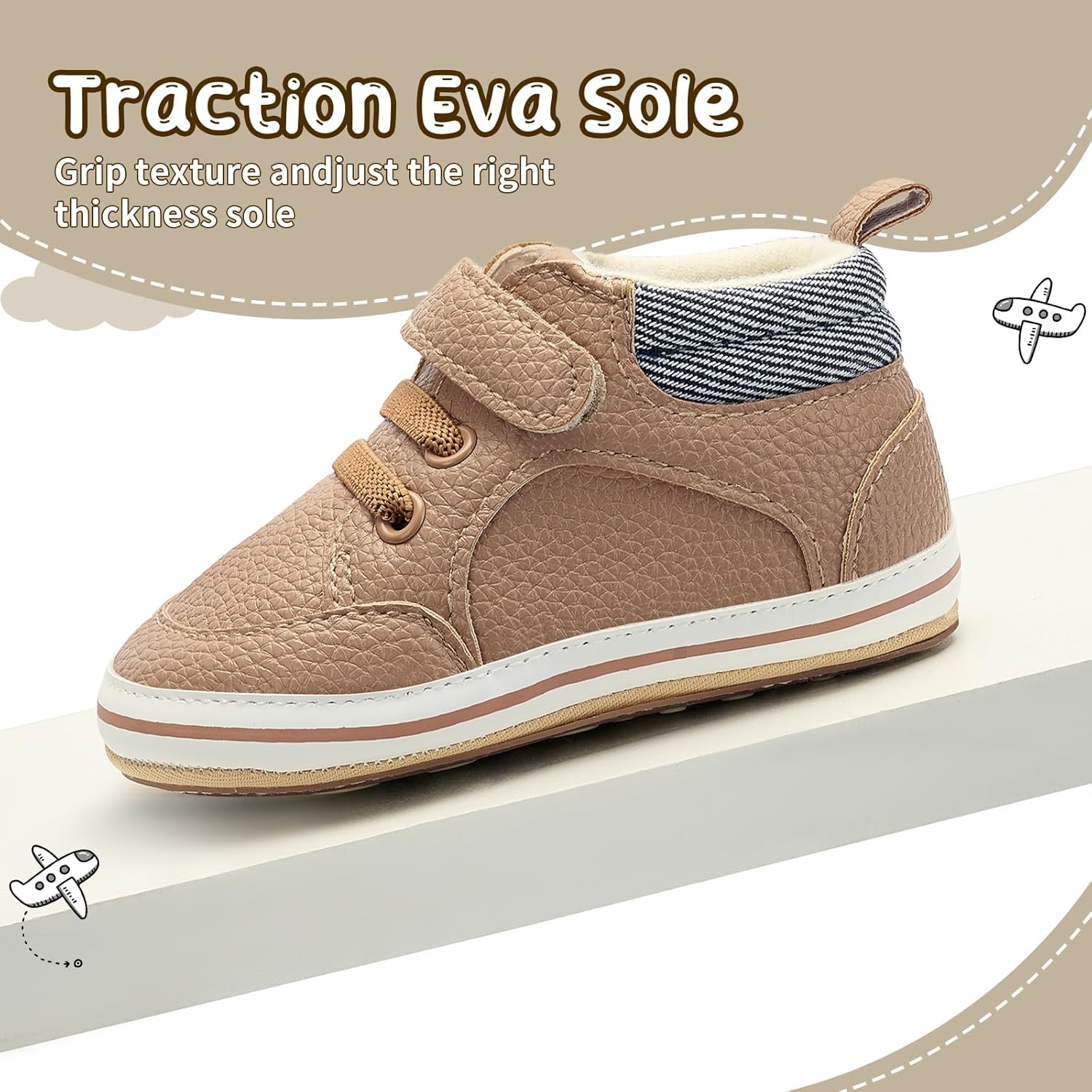 Baby Boys Girls Non-Slip Rubber Sole High-Top PU Leather Infant Sneakers Toddler Crib First Walker Shoes