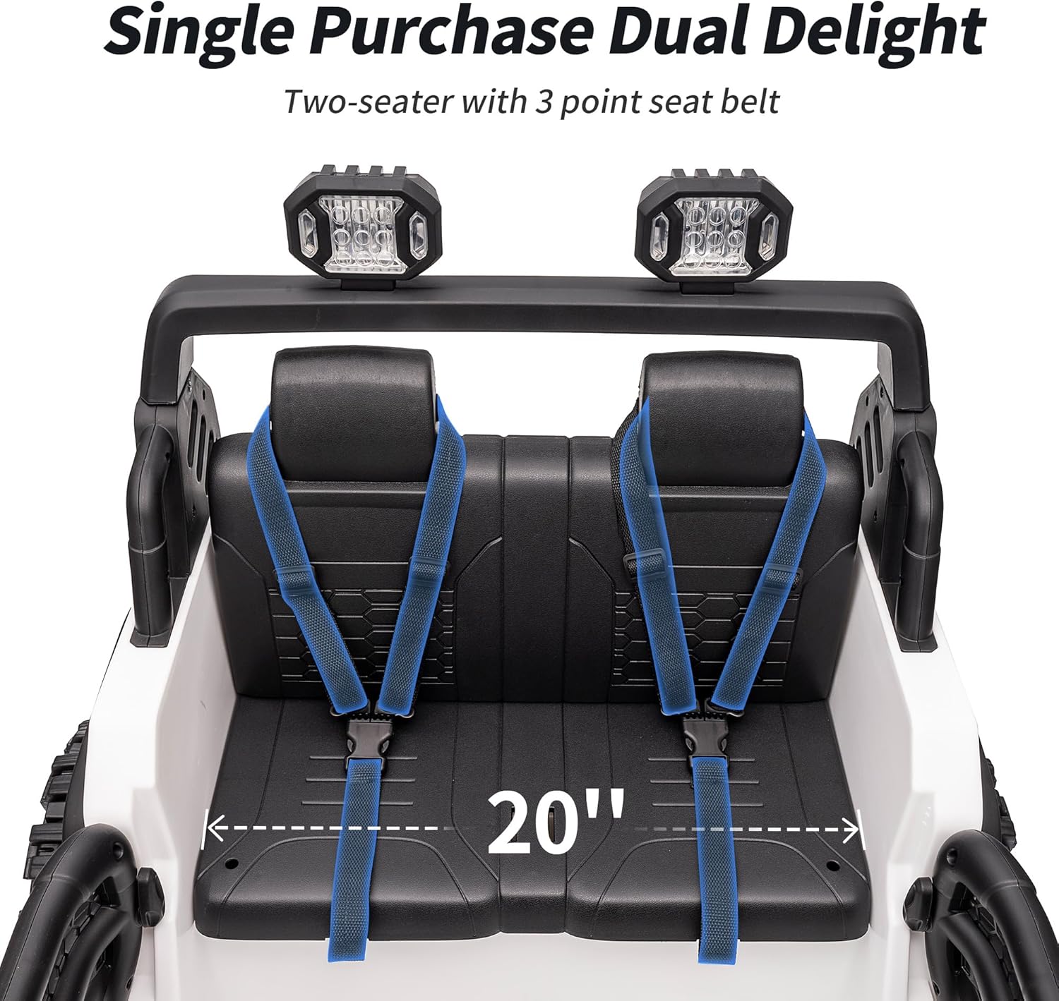- SPACIOUS 20'' TWO SEATER: The kids car to drive 2 seater with a three-point safety belt fits one child (3-8 years) or two (up to 8 years combined), ensuring a safe and enjoyable ride in the 12V kids ride-on truck.