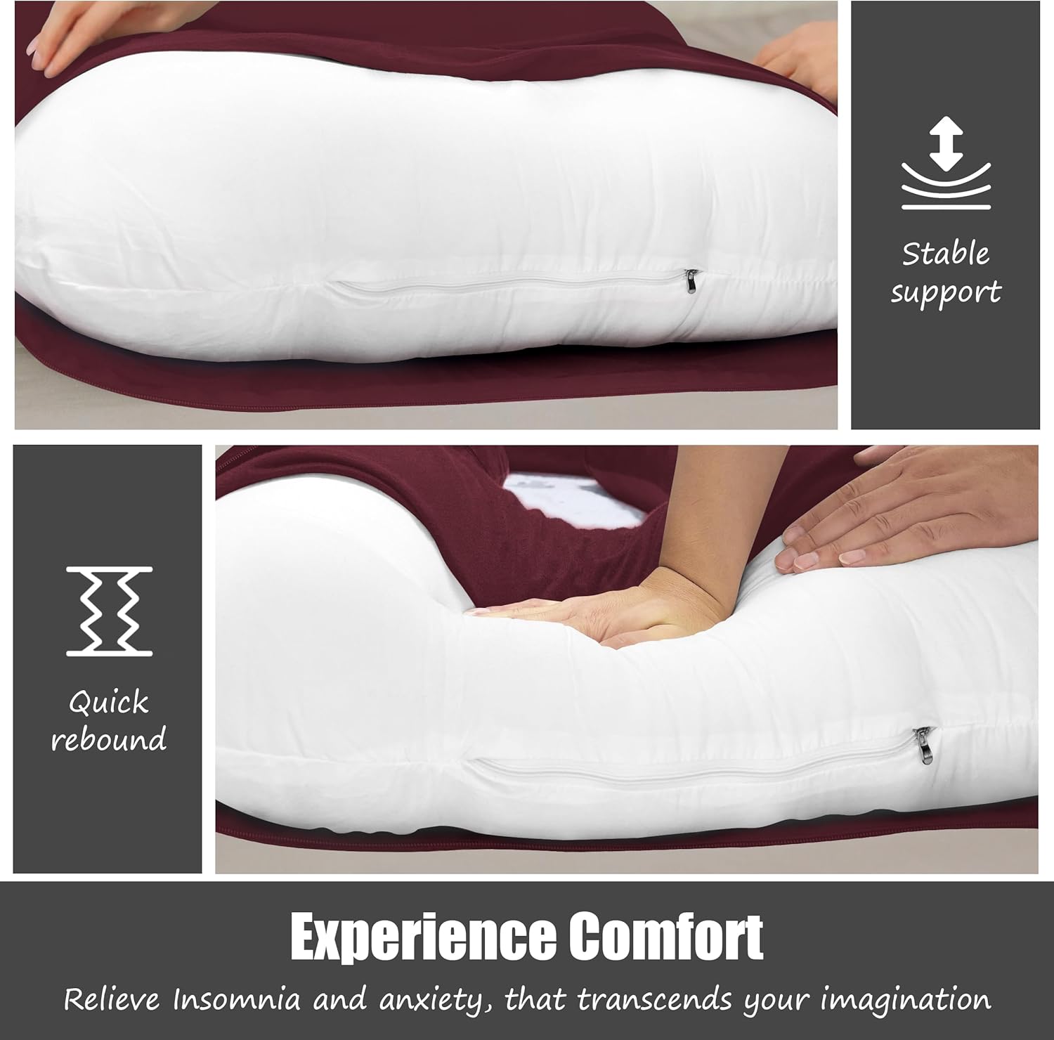HIPHOP PANDA U-Shaped Pregnancy Pillow for Sleeping - Full Body Maternity Support Pillow with Cooling Removable Cover - Comfort for Back, HIPS, Legs, Belly - 57 Inch for Pregnant Women, Burgundy