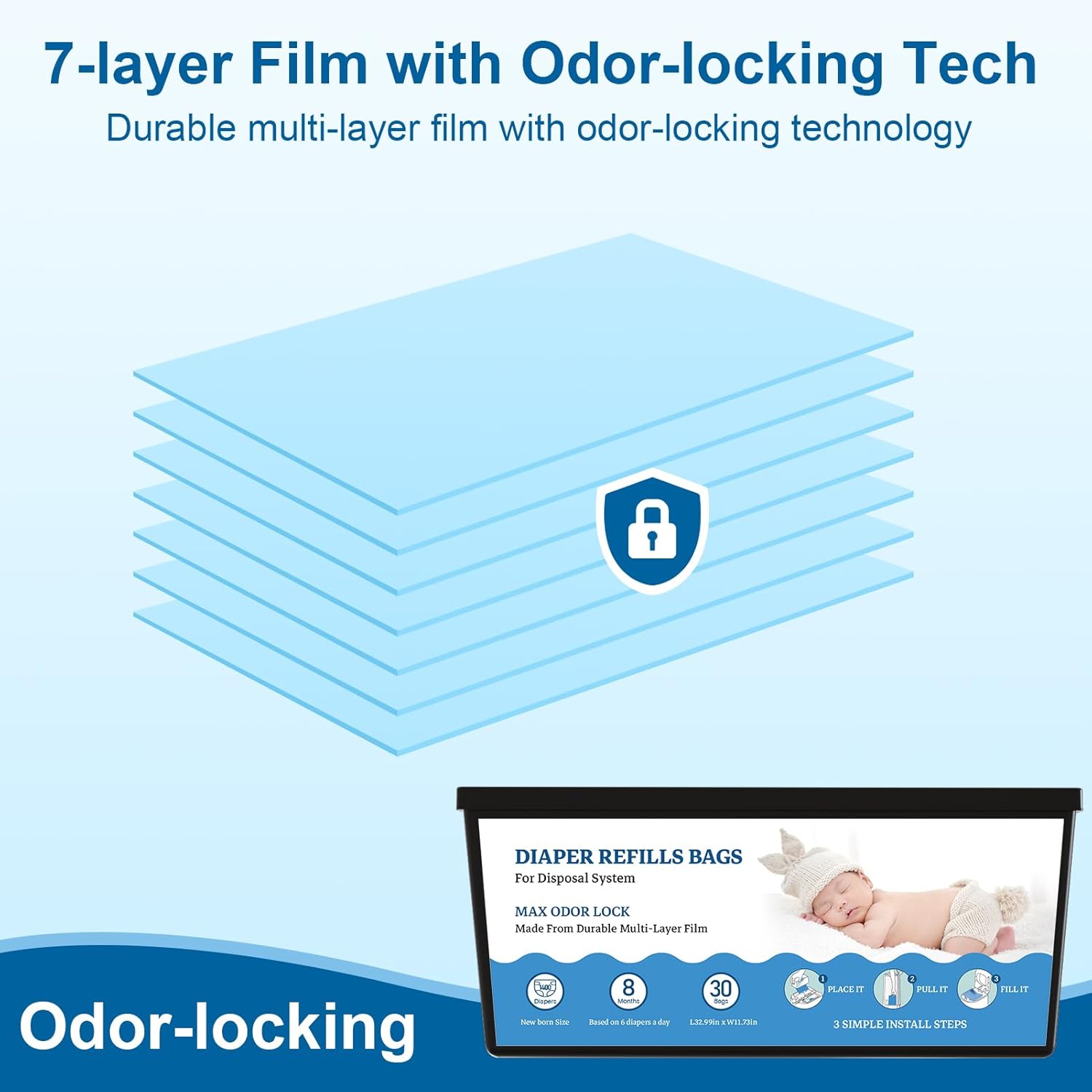 - Unbeatable Odor Lock: Featuring an innovative 7-layer PE barrier, these refills trap odors and keep the nursery fresh and clean; Lightly scented to lock in odors while staying gentle and non-irritating