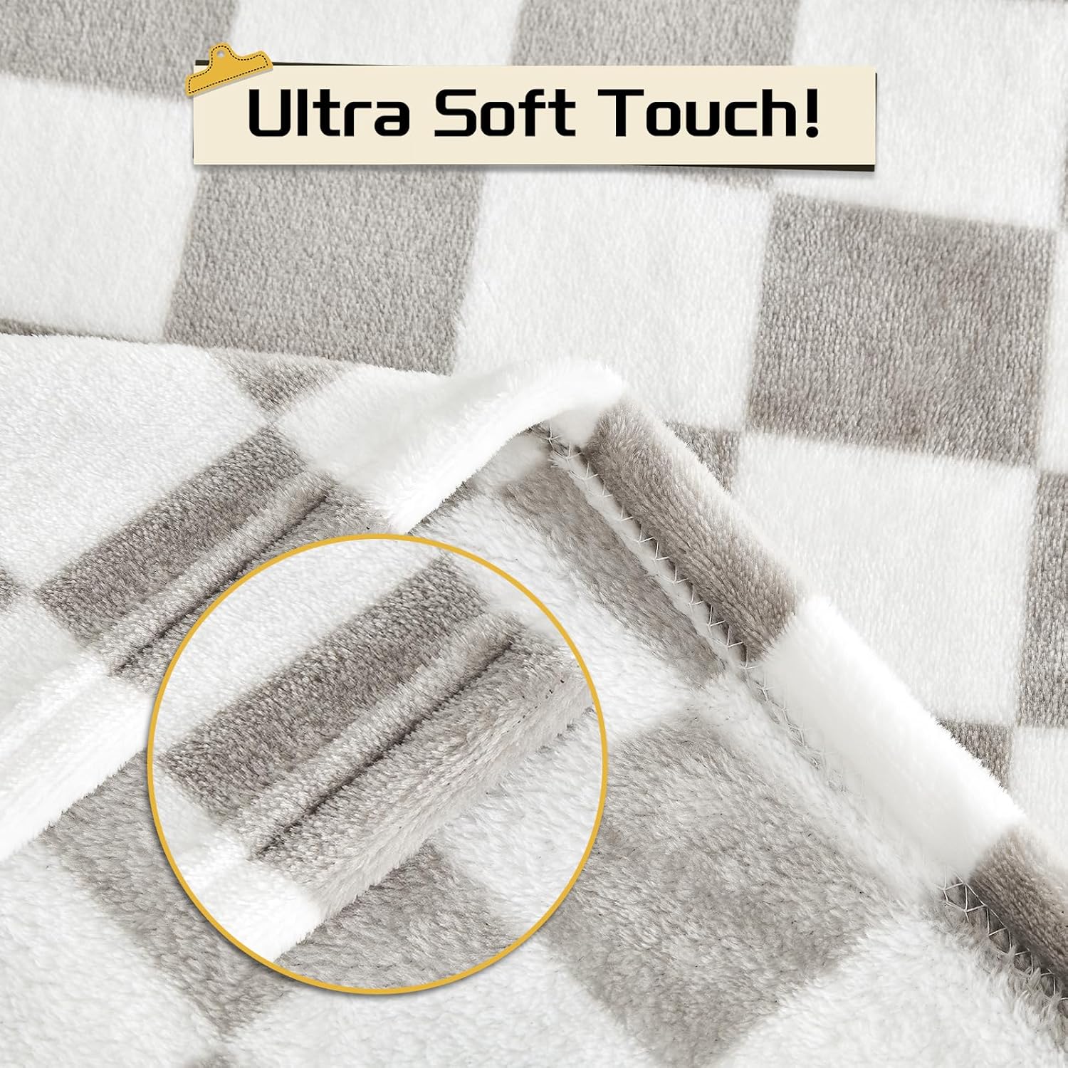 Yurhap Checkered Baby Blanket Fleece Baby Blankets Neutral for Boys Girls, Super Soft Warm Lightweight Infant Toddler Newborn Receiving Gifts for Crib Stroller, 30x40 Inch, Greige