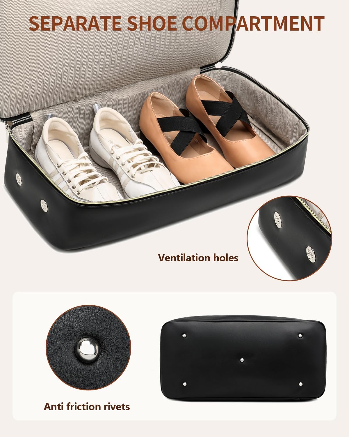 Weekender Bags for Women, Travel Duffle Bag Carry On Overnight Bag with Cosmetics Bag and Crossbody Purse for Gym Hospital, Gifts for Women, Black