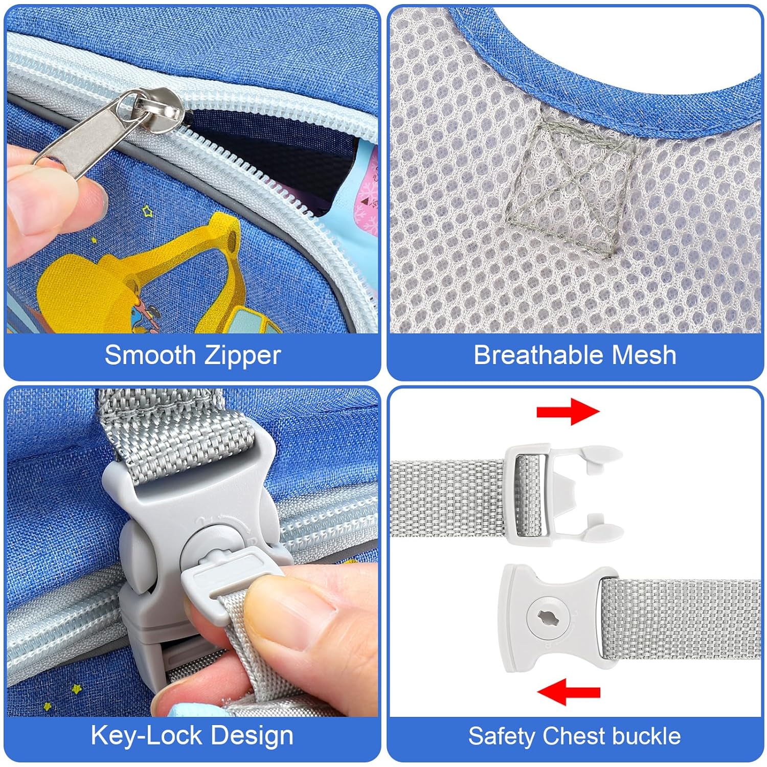 - Adorable & Comfortable: The baby harness with lovely cars and excavator patterns that your child will be very glad to wear. It made of cotton material and mesh, soft and safety, The breathable mesh cloth on the back is highly increasing the comfort