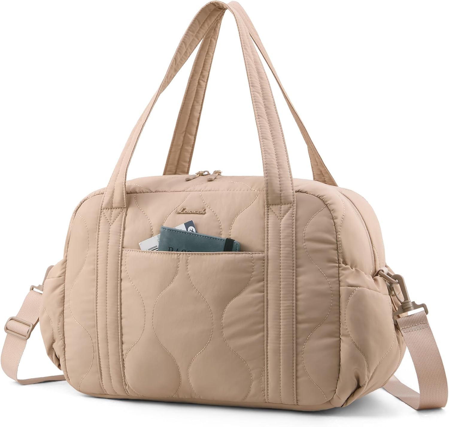 LOVEVOOK Gym Bag for Women, Puffer Travel Duffle Bag with Wet Pocket, Lightweight Carry On Bag Weekender Overnight Bag with Toiletry Bag, Multiple Pockets Hospital Bags for Labor and Delivery, Khaki