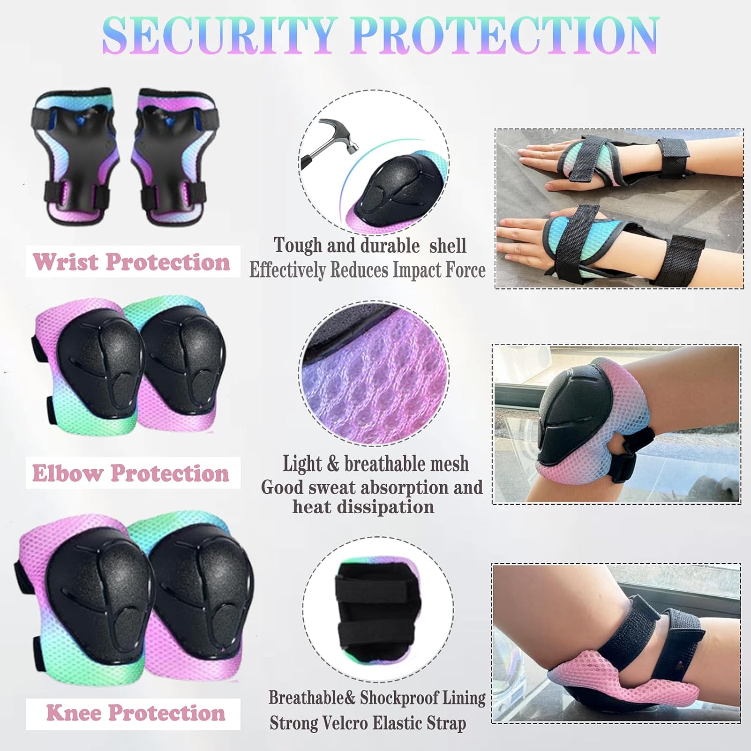 - 【Suitable for Multiple Sports】ours The kids helmet and knee elbow pads with wirst guards are designed for kids sports saftey protection especially for any outdoor activities for many outdoor sports such as skating, skateboard, scooters roller, skating balance bike helmet can provide professional protection to your children, our kids away from hurt when they enjoy the joy of sports.
