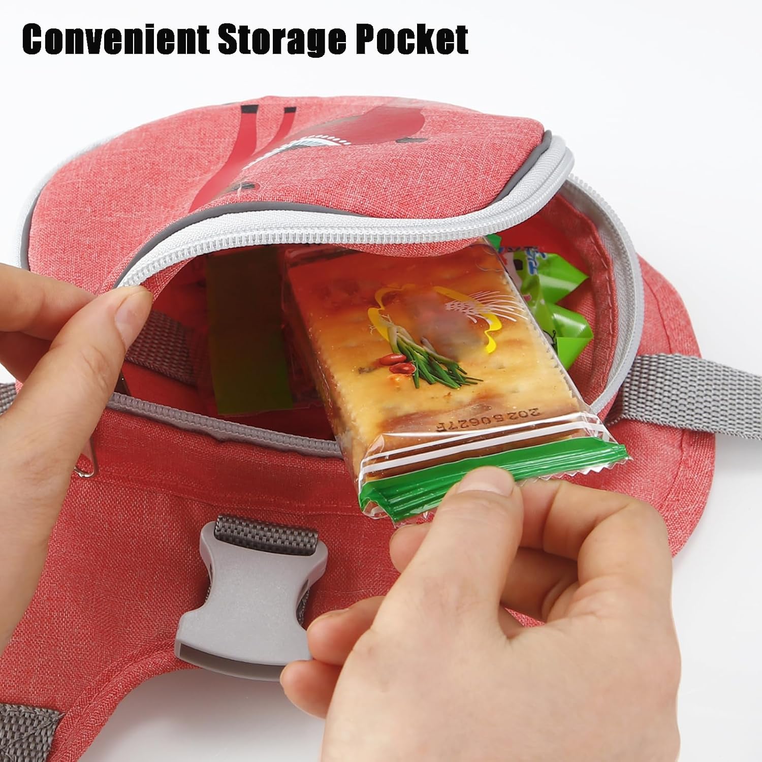 - Functional & Convenient Storage – Includes a spacious main compartment and a front zipper pocket, perfect for carrying snacks, toys, wipes, or other small essentials when out with your child.