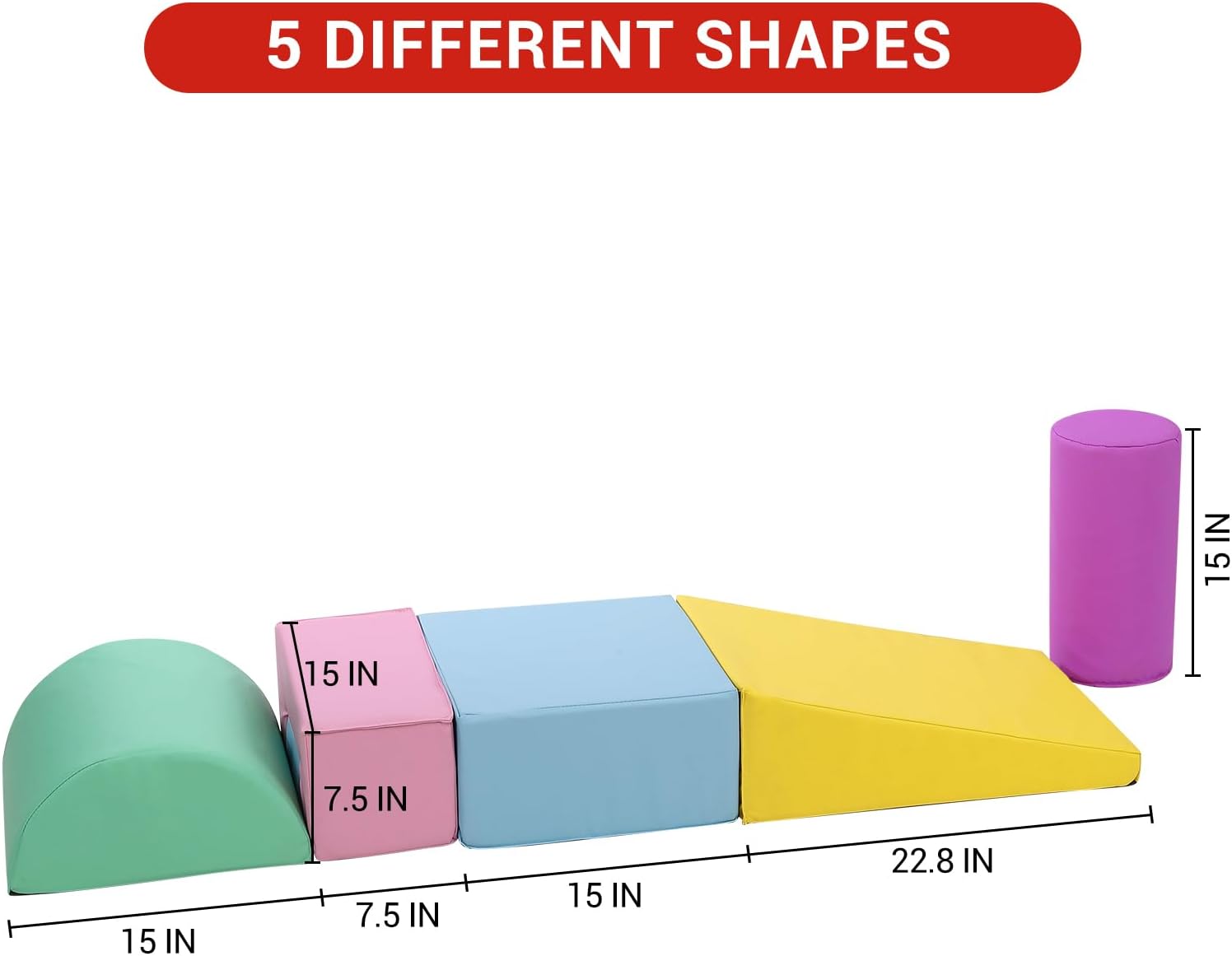 - 6-Piece Set: Includes a triangle, large cuboid, small cuboid, half moon, wedge and cylinder. Designed for ages 1–3, this climbing toy sparks imagination with endless configurations, letting kids enjoy climbing, stacking, and rearranging shapes.