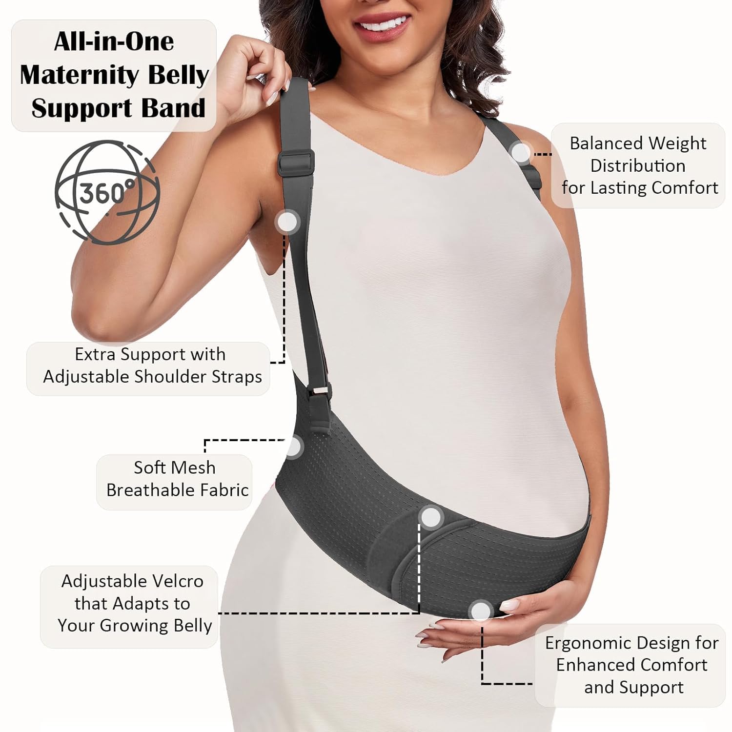 - Customizable Fit: With adjustable shoulder straps, this pregnancy belly support band grows with you. Adjust the fit as your belly expands, ensuring you receive the right amount of support throughout the day.