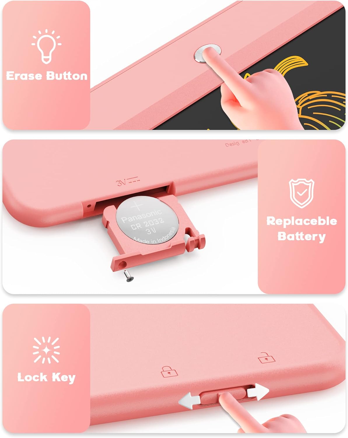 - EYE PROTECTION COLOR SCREEN: 10-inch LCD colorful screen, easy for viewing and graffiti, free child’s imagination. This drawing tablet without radiation, no glare, safe and comfortable, even kids use for a long time. Great educational preschool toys age 3 4 5 6 7 8 boys girls!